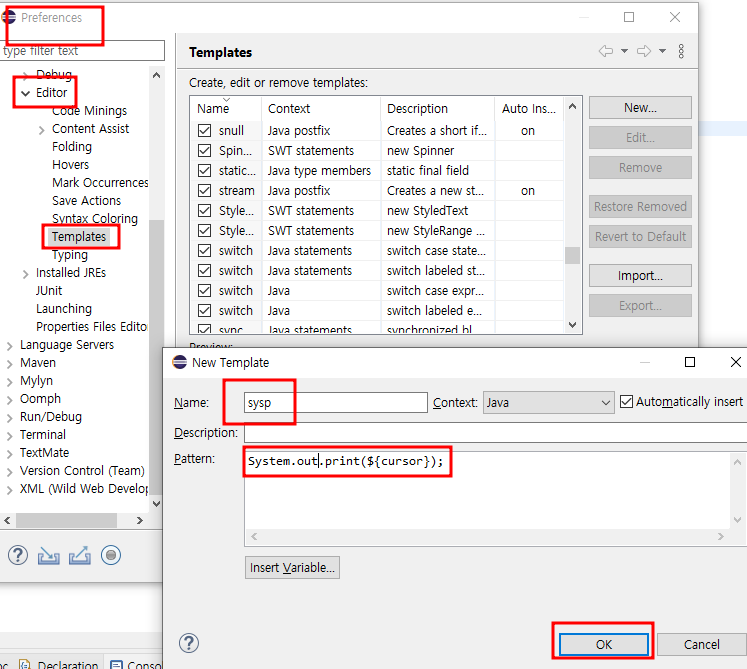2023.12.21 - [Program language/JAVA 자바] - 자바 eclipse 자동 완성 기능 추가