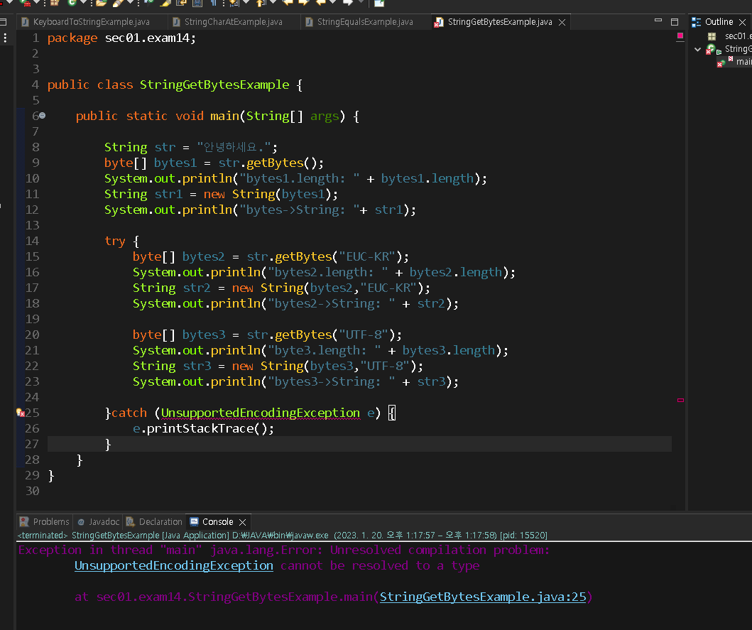 먼저 UnsupportedEncoding은 java.io라는 패키지에 들어가 있다.