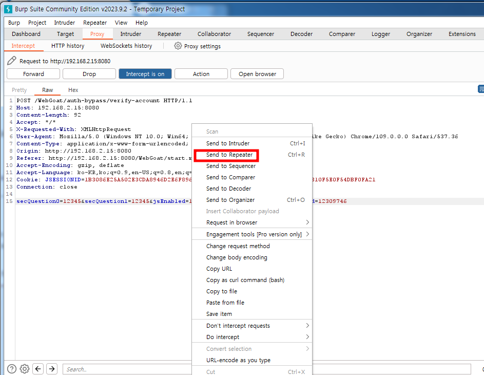 먼저 burpsuite의 intercept를 켜고 password에 아무거나 입력해주세요.