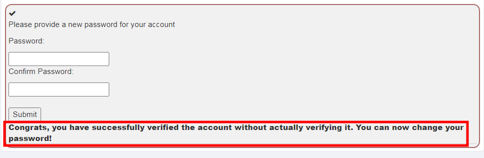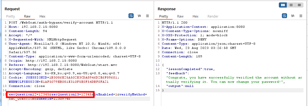secQuestion 뒤의 숫자를 입의로 바꿔주고 send를 누르면 오른쪽에 Congrats 하면서 인증이 성공했다고 뜹니다.
