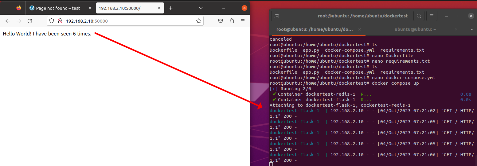 클릭 여러번 하면 횟수가 증가하고 ubuntu에 기록되는 것을 알 수 있다.