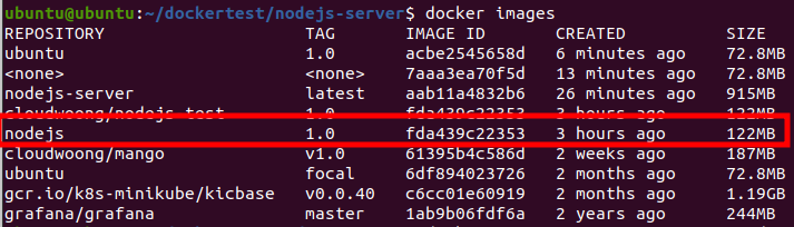 ubuntu@ubuntu:~/dockertest/nodejs-server$ curl localhost:8080